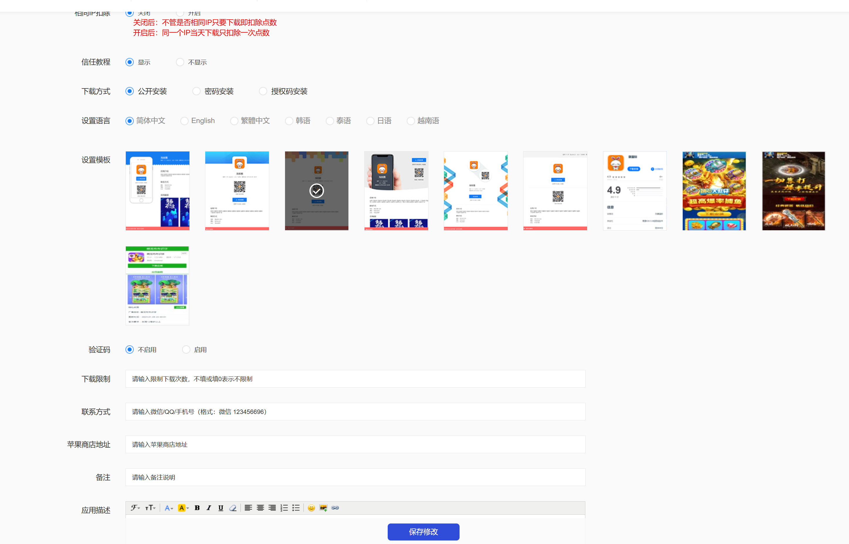 支持苹果安卓app链接合并分发,自动判断双端下载。自动跳转安装,