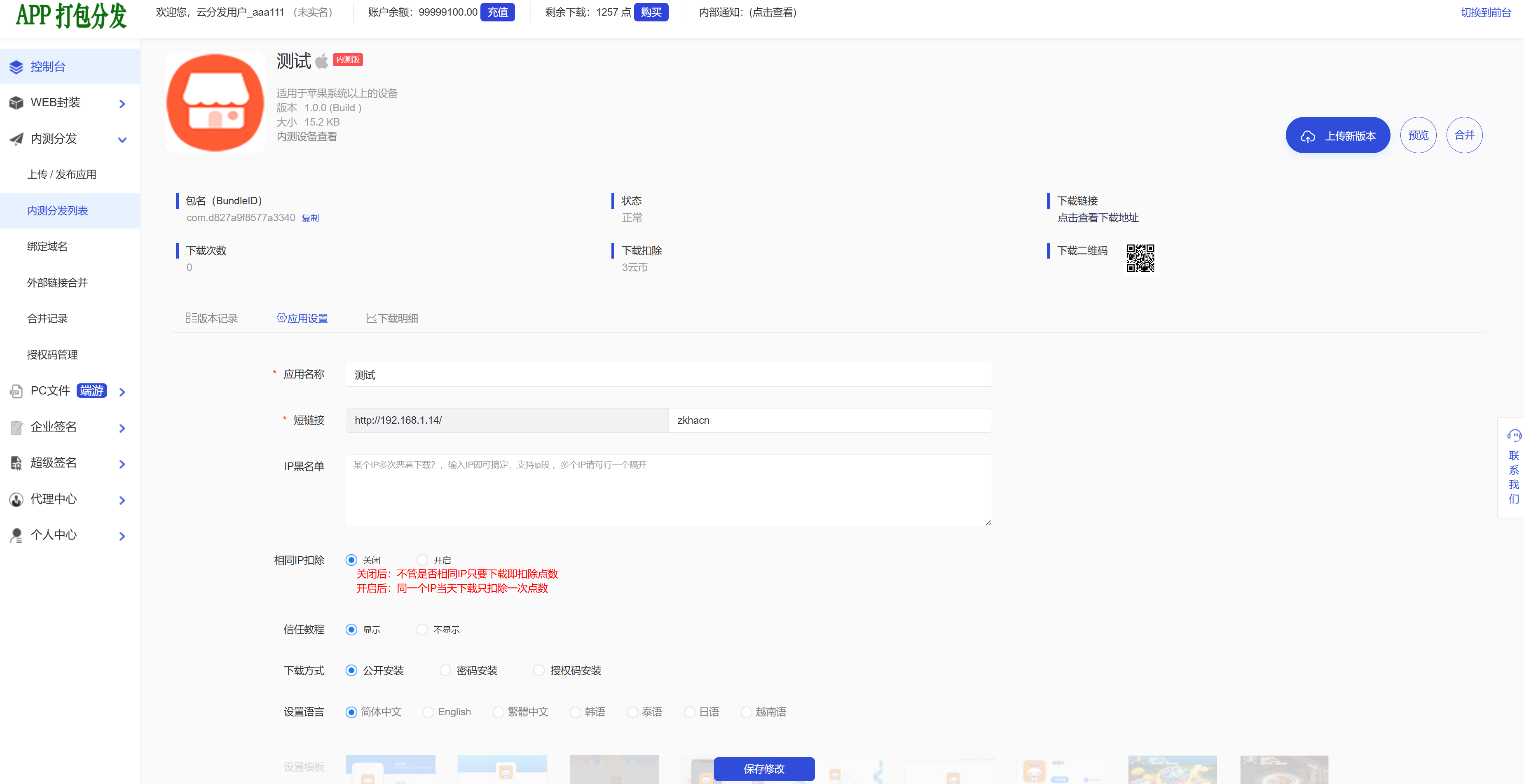 .本系统支持描述文件免签打包分发,apk/ipa 苹果安卓app封装分发