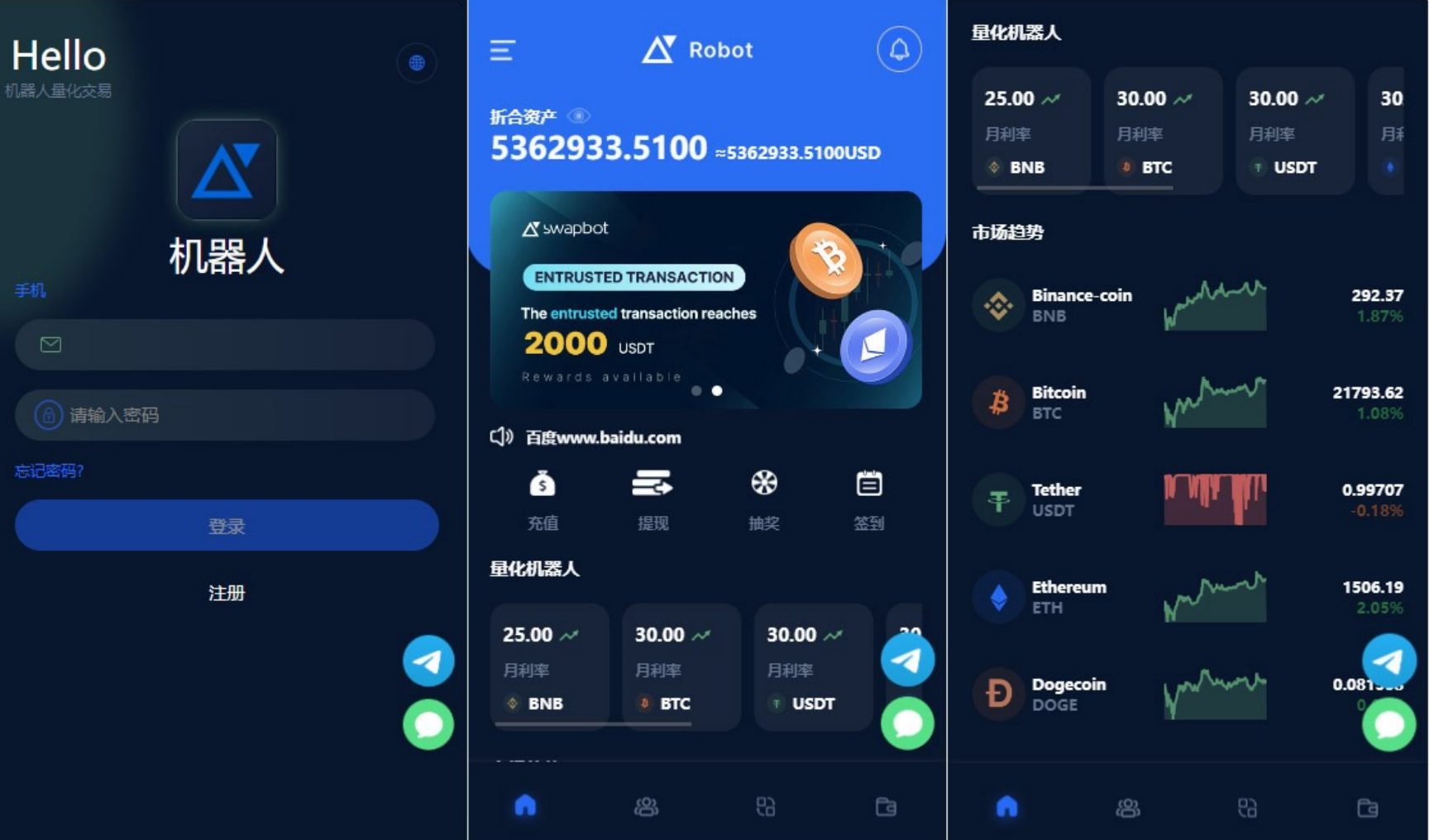 五语言BTC虚拟币质押投资理财系统源码,定期存币收益理财,加密货币机器人量化交易,内附搭建教程